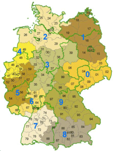 Seite? Danach wird der mögliche Postleitzahlenbereich festgelegt.